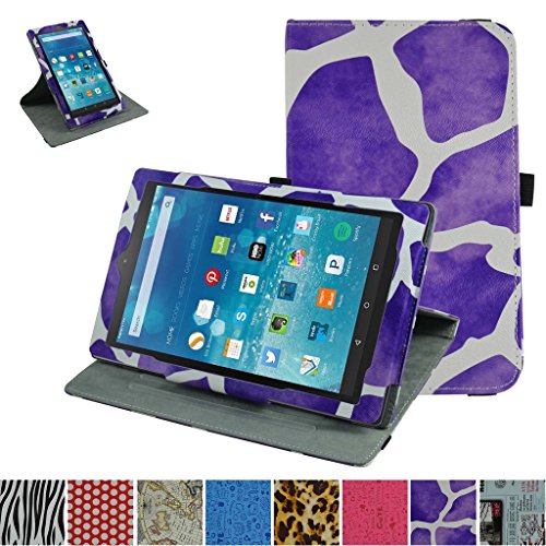 Fire HD 8 6th Generation 2016 Rotating Case,Mama Mouth 360 Degree Rotary Stand With Cute Pattern Cover For 8" All-New Amazon Fire HD 8 6th Generation 2016 Tablet,Giraffe Purple