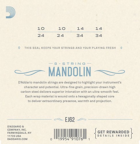 D'Addario EJ62 80/20 Bronze Mandolin Strings, Light, 10-34