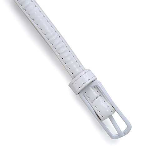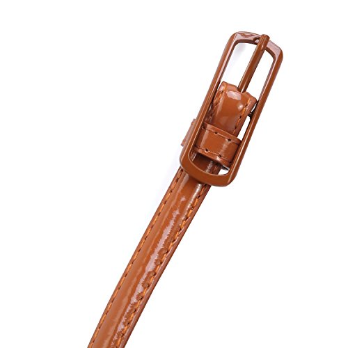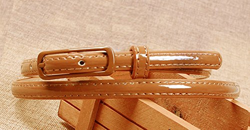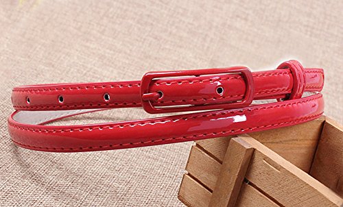 Material: PU patent leather Size: One size adjustable belt, length 35.4"-43.3" Decorations: Rectangular?Buckle Applicable Age: Adult Style: Fashion belt for dresses Color: Solid color Matching: Dresses,sweaters,tops,jeans,etc Occasions: Working,Wedding,Prom,Party,Daily Wear,Shopping,etc