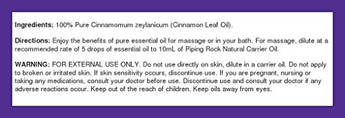 Piping Rock Cinnamon Leaf 100% Pure Essential Oil 1/2 oz (15 ml) Dropper Bottle Cinnamomum Zeylanicum