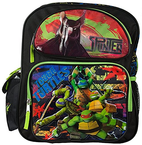 -. Brand : Ninja Turtles -. Color : Black -. Department : boys -. EAN : 0843340119472 -. Feature : Size: 16" Boys School Backpack Measuring Approximating: 16" x 12" x 5" / Side Pockets: Pocket and Water Bottle Net Pocket / Front Pockets: One Larged Zipped Pocket and One Small Zipped Pocket / Picture of all Ninja Turtles with Master Spinter on Top -. ProductGroup : Apparel -. ProductTypeName : LUGGAGE -. Size : Large 16" -. Title : Nickelodeon Teenage Mutant Ninja Turtles 3d Embellishment 16" School Backpack, -. UPC : 843340119472