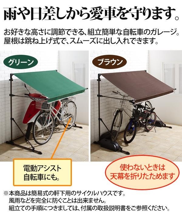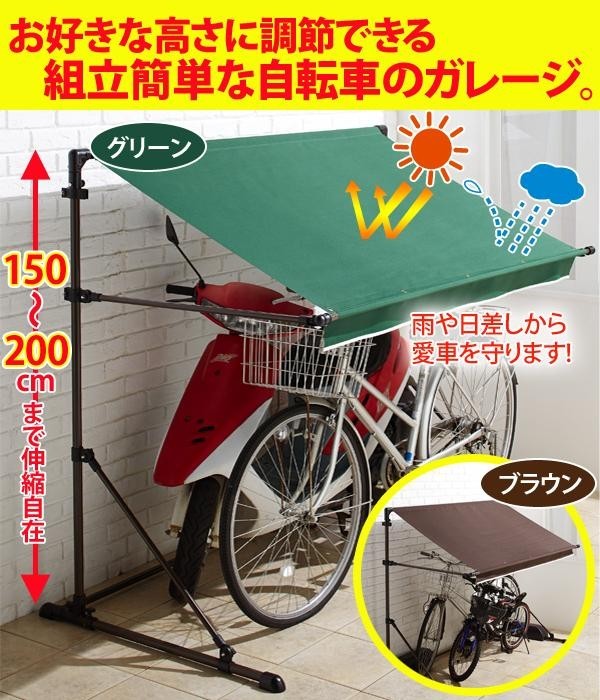 | お好きな高さに調節できる、組立簡単な自転車のガレージです。屋根は跳ね上げ式で、スムーズに出し入れできます。使わない時は折り畳むことができるので、収納場所を取りません。 |