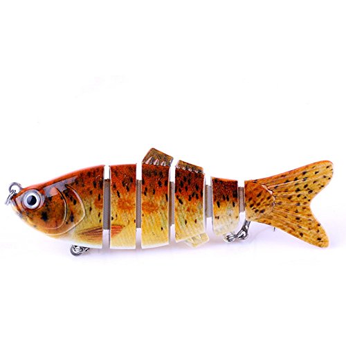 -. Feature : *It is a good gift for Dad or Friend who like fishing. / *Lifelike swimming stroke, S-swim motion at any speed. / *Helpful fishing tool with bright colors to attract fish. / *Suitable for seawater and freshwater, wonderful bait for anglers. / *Widely targeting at predator fishes such as bass, yellow perch, walleye, pike, muskie, roach, trout, etc.