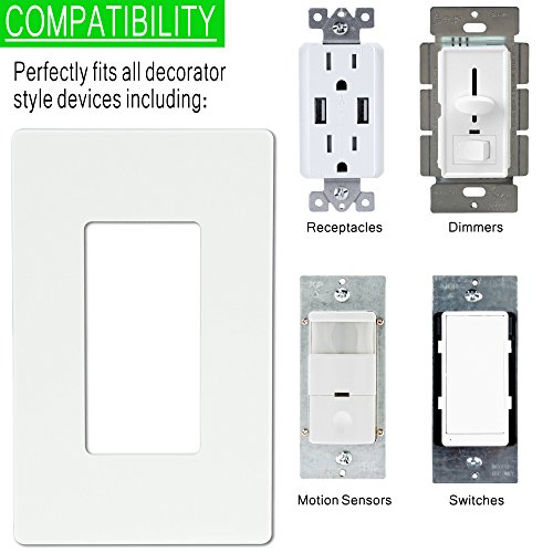 Compatible with rocker/GFCI/Paddle Outlet receptacles, unbreakable PC material. Contents: one screw-less “child safe” 3-Gang wall plate in gloss white color, with sub-plate, and screws. Quality: made of unbreakable PC polycarbonate material. Provides durability, flexibility, and optimum resilience to withstand hard impacts and heavy force. Features: heat and fade resistant cover plates have a very smooth, and polished finish without the grainy look or texture seen on wall plates made of inferior plastic material. Applications: decorator style wall plate allows easy retrofitting to any decorator/GFCI style devices including outlets, dimmers, sensors, and timers in commercial or residential settings. Installation: snap on covers are easy to install for advance or novice DIY (do-it-yourselfers). various sizes and colors available, UL listedFeature