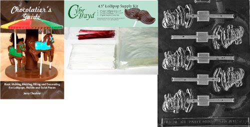 Cybrtrayd 45stK25RBk-C109 Waving Santa Lolly Chocolate Mold with Chocolatier's Bundle of 25 Lollipop Sticks, 25 Cello Bags, 25 Red Twist Ties and Chocolatier's Guide