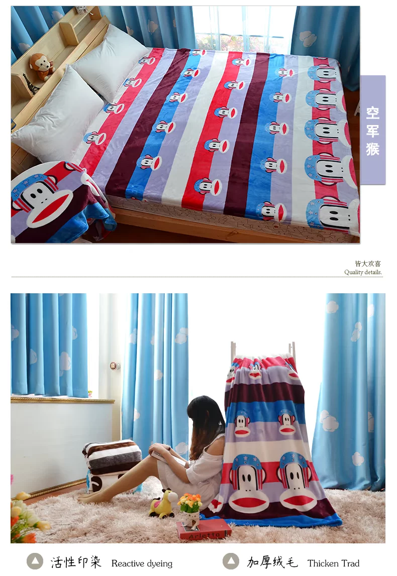 品质划分:珊瑚绒 < 法兰绒 < 水貂绒 < 云貂绒 毛感细腻柔软,非常的亲肤;绒毛短而密,保暖性能好;印花清晰,色泽饱满; 我们用韵达快递或者邮政小包陆续发货! 介意者请慎拍,谢谢理解!