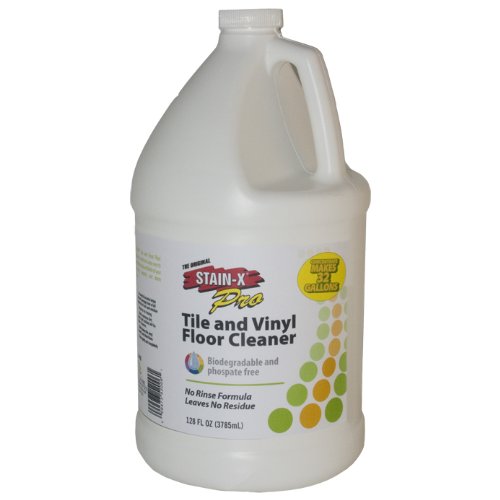 Studio : STAIN-X Publisher : STAIN-X Binding : Misc. Product Description Concentrate gallon makes 32 gallons of "ready to use" floor cleaner. STAIN-X® Pro Vinyl/Tile Floor Cleaner is pH balanced to clean vinyl, ceramic tile, and linoleum floors quickly and leave your floors cleaner than ever. STAIN-X® Pro Vinyl/Tile Floor Cleaner has a specially designed drying agent that helps floors dry quickly so you can resume normal activities without worry of slipping on wet floors. So simple to use: mix 1 cup of cleaner with 1 gallon of warm water and mop your floors. STAIN-X® Pro Vinyl/Tile Floor Cleaner unlike many general purpose cleaners, does not contain any aggressive solvents, oils, or harsh caustic builders. Whether it is used in routine mopping, machine scrubbing or in an automatic floor machine, STAIN-X® Pro leaves your floors clean and your home smelling fresh. 0
