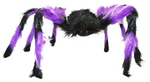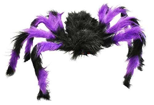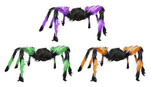 Set of 3 Halloween Large Hairy Spiders! Purple - Green - Orange! 24" Spider - Indoor / Outdoor Halloween Spider Party Decoration! (3)