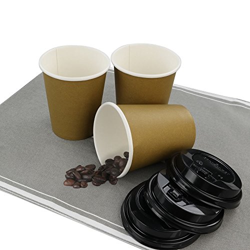 -. Feature : 8 oz, 45 counts brown cups and black travel lids / Idea for coffee, hot chocolate, tea and other hot or cold beverage / Perfect for home, coffee shop, office, travel, commercial use and ect