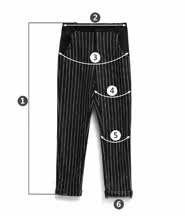 | 尺码 | ①裤长 | ②腰围 | ③臀围 | ④大腿围 | ⑤膝围 | ⑥脚围 | ⑦前裆 | ⑧后裆 | ||