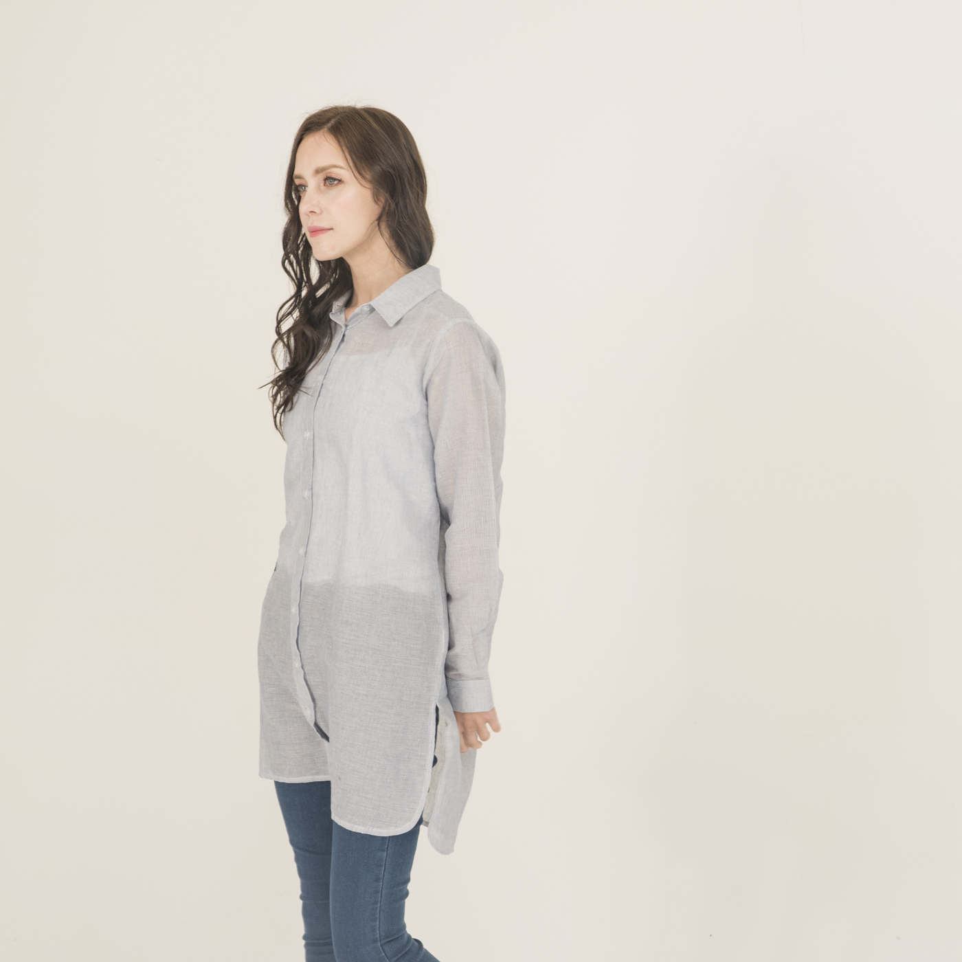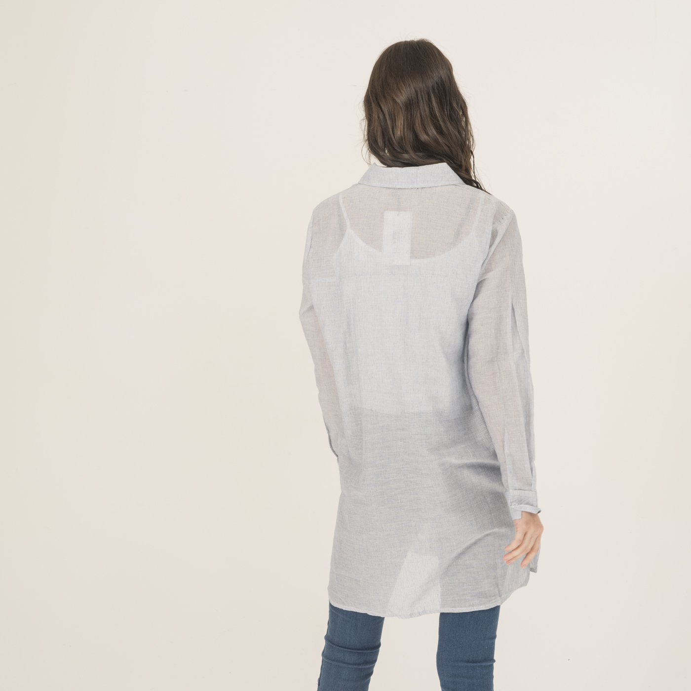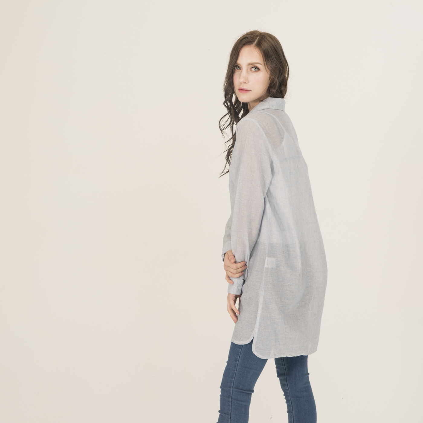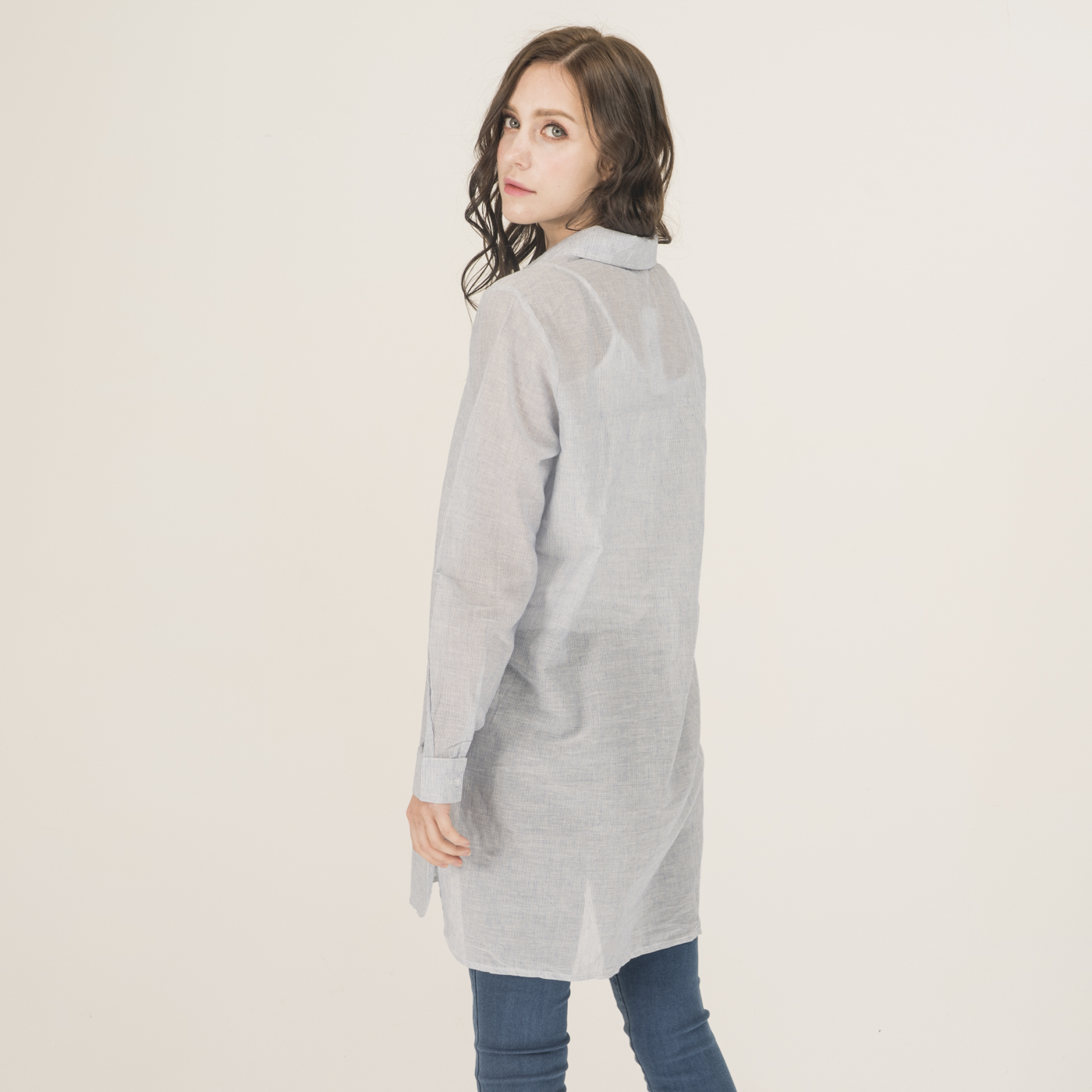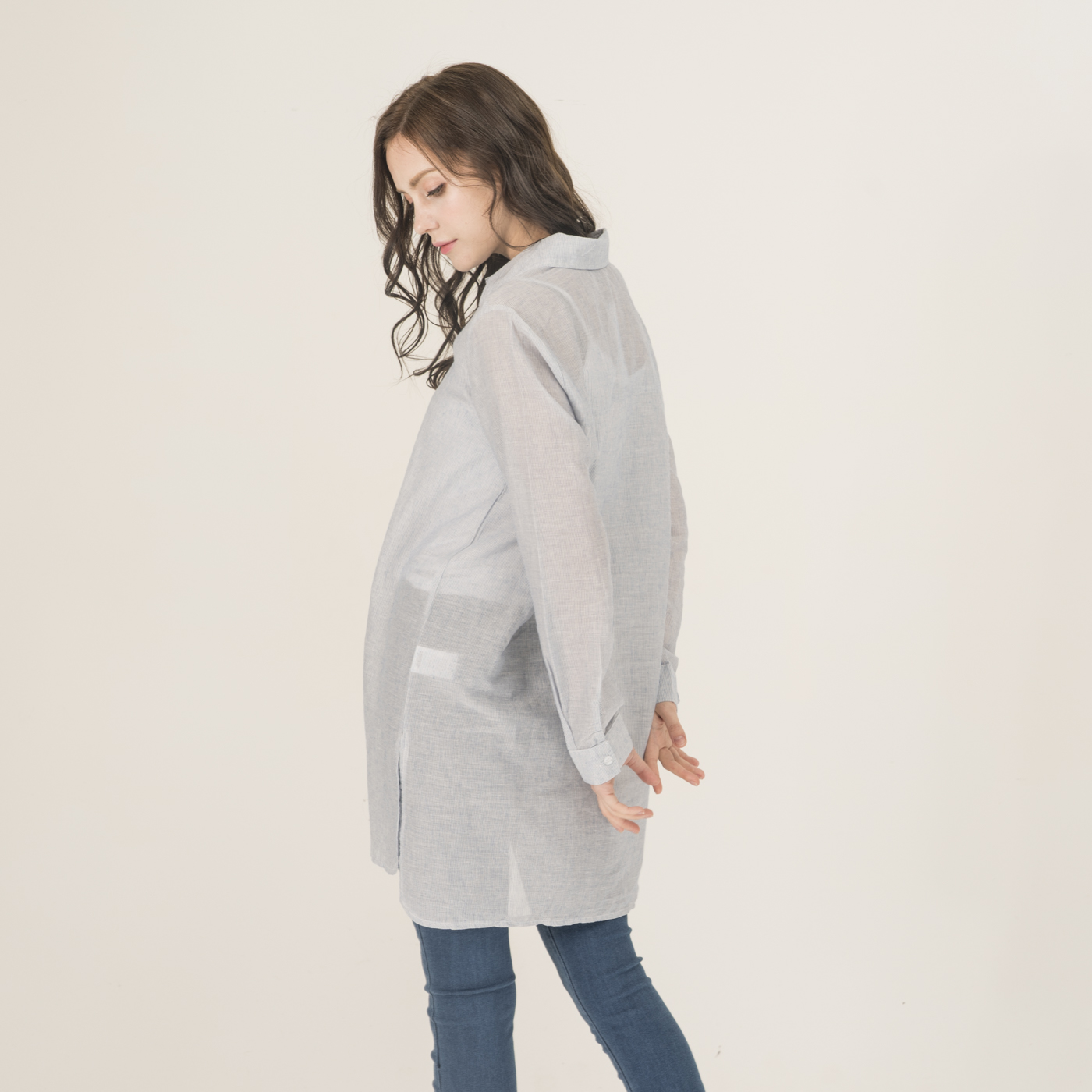 자수 포인트가 예쁘고 청량함이 있는 시원한 소재의 롱 셔츠입니다.