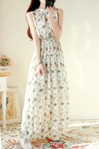 花柄ワンピース 上品 マキシ丈ワンピース ロング丈ワンピース ヴィンテージ フラワープリント ハイウエスト プチプラ