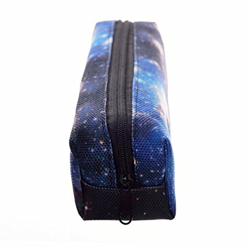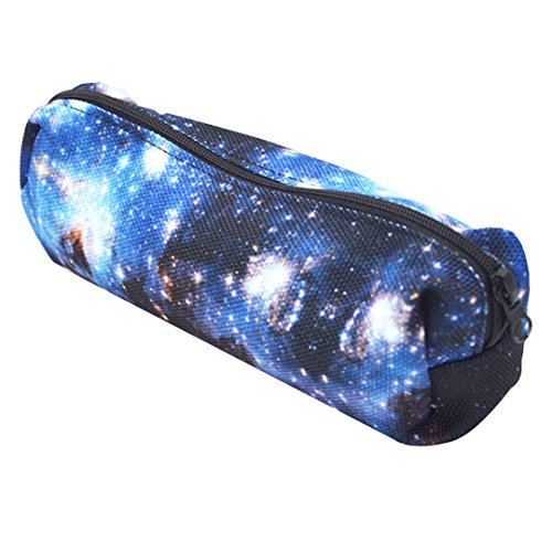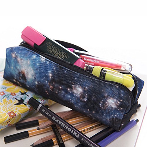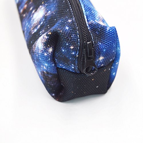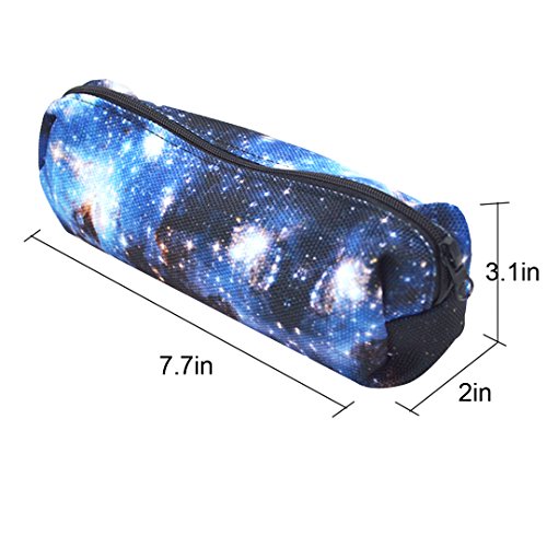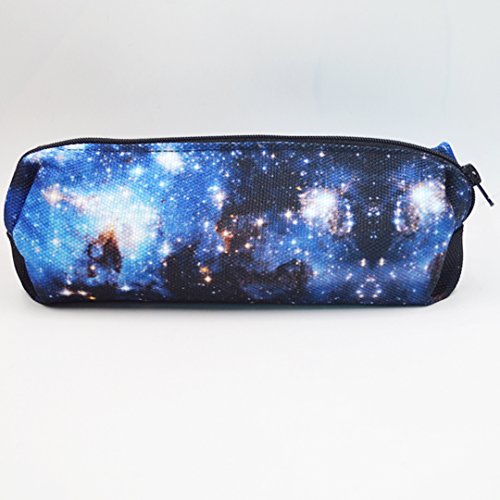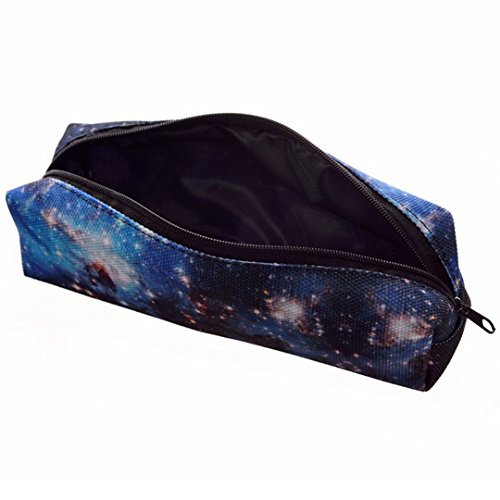 Unique universe star pattern, advanced printing craft, keeps the colors bright and fadeless for a long time. Sturdy canvas fabric, water resistant and durable, safe zipper closure, suitable for pens, pencils, eraser and makeup items. Compact size yet large capacity, versatile design, great to be a pen holder or cosmetics purse.