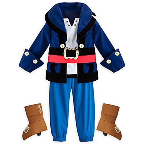 -. Brand : Disney -. Feature : Authentic Disney Costume / Includes jacket with attached undershirt, pants, and boot covers / Blue velvet jacket with black velvet trim / aux gold-colored buttons and belt buckle with velcro fastening / Attached undershirt secured with self-stick fabric fasteners -. Label : Disney Store -. Manufacturer : Disney Store -. PackageQuantity : 1 -. ProductGroup : Apparel -. ProductTypeName : CHILDRENS_COSTUME -. Publisher : Disney Store -. Studio : Disney Store -. Title : Disney Store Little Boys Jake & the Neverland Pirates Captain Costume Multi