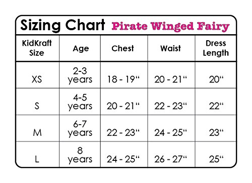 -. Binding : Toy -. Brand : KidKraft -. Feature : Waist Width 20-21" Chest Width; Super-soft lining for her comfort; Gold piping on bodice and skirt for extra detail; Made in South Africa exclusively for KidKraft / Dress Length 20" / Age 2-3 / ProductWeight 0.35 / Material Polyester, Spandex -. Label : KidKraft -. Manufacturer : KidKraft -. MPN : 63416A -. PartNumber : 63416A -. ProductGroup : Toy -. ProductTypeName : TOYS_AND_GAMES -. Publisher : KidKraft -. Size : X Small -. Studio : KidKraft -. Title : KidKraft Pirate Winged Fairy Dress Up Costume