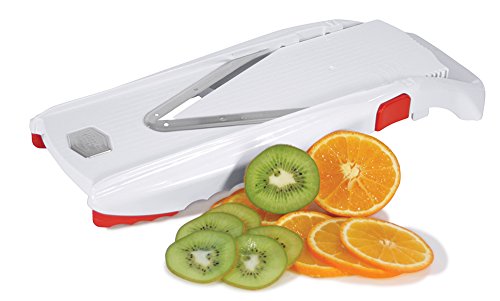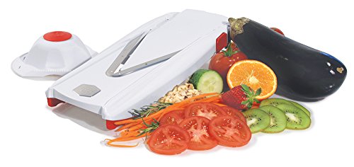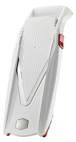 Made in Germany; Set includes: Tough ABS plastic frame with slip resistant rubber feet, Food Safety Holder, 3 inserts (7 mm and 3-1/2 mm blades, thick/thin plane slice insert) Blade insert holder