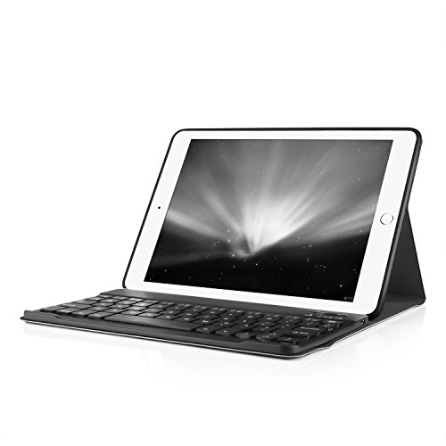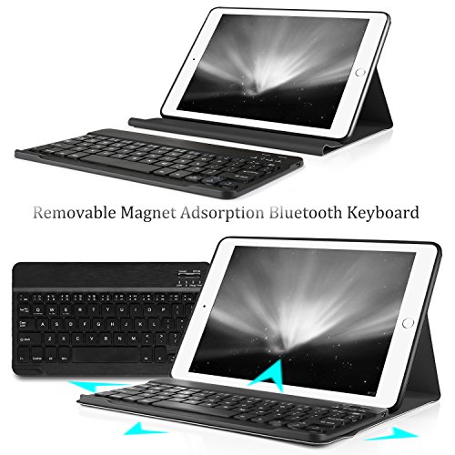 KuGi New iPad 9.7 2017 keyboard case, Ultra Lightweight Stand Portfolio cover case with Detachable Bluetooth Keyboard for Apple New iPad 9.7 2017 tablet (Black)