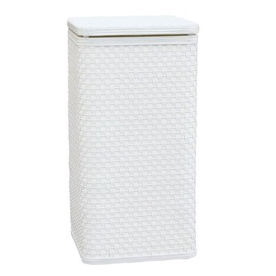 -. Feature : 23.75"H x 11.5"W x 11.5"D / Hinged lid / Paper wicker / White / Imported
