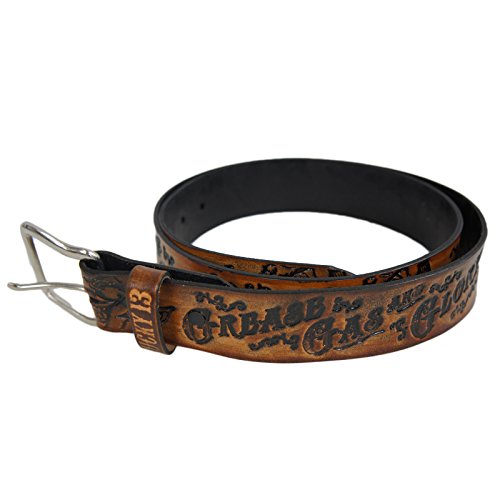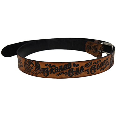 Lucky 13 Mens Grease Gas Glory Brown Embossed Leather Belt