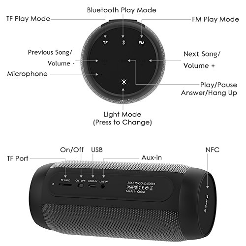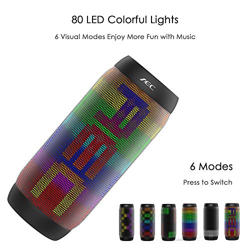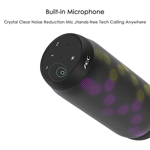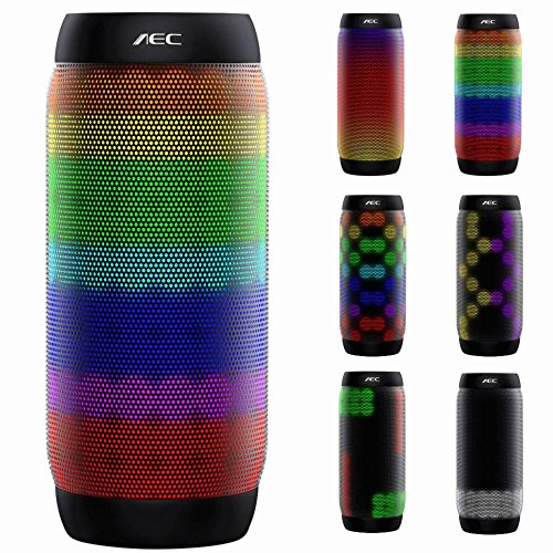 AEC Bluetooth Speakers Hi-Fi Ultra Portable LED Stereo Speaker 6 Light Modes, Built-in Microphone Hand-free Phone Call, Water Resistant, TF Card Play, FM Radio for Phone Tablets PC and More