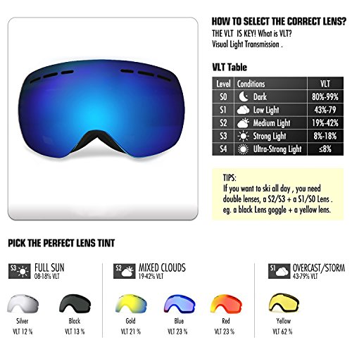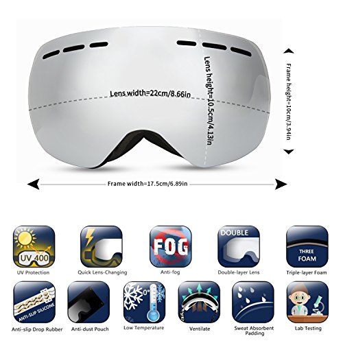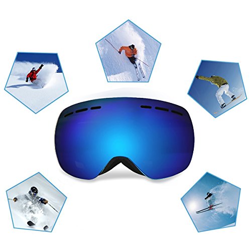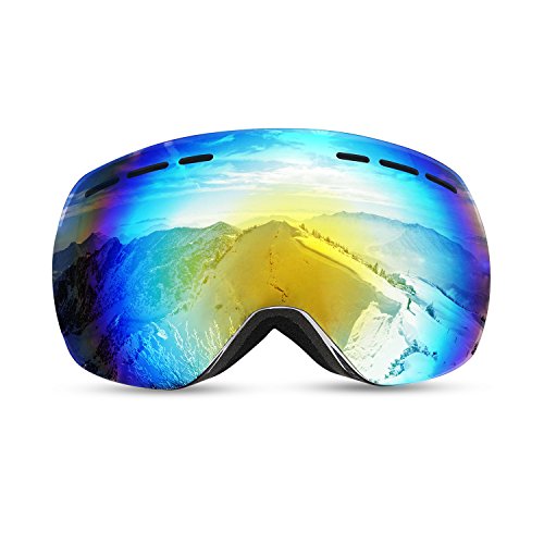 -. Feature : TPU Frame & Large OTG (Over the Glasses) Design - With durable TPU frame, the single-layered snowboarding glasses is more softer and comfortable to wear, offering you the best protection. As this ski face mask has big inner space, the OTG design skate goggles allows you to wear your glasses under the goggles / Anti-fog Design & 100% UV400 Protection - With dual solid PC lens and anti-fog coating like Revo, this skiing goggles provides you a clear landscape view during skiing, snowboarding, snowmobile, skate, motorcycle, cycling. UV-protective, windproof, dust-proof, and anti-glare, the skate ski goggles perfectly protects your eye / Spherical Ultra-wide View - Panoramic lens design provides a clear and unobstructed view vision, perfect for customer to see the ditches and avoid accidents. More wider the view vision ice skating goggles offers, more safer when you¡¯re skiing / Triple Layer Foam & Smooth Venting - 3-layer premium foam is soft and comfortable to wear, protecting you from impact resistance. 2-way venting system better enhances the air-flow inside the lens, leaving you clear view without any fog / Helmet Compatibility Adjustable Strap - Extra long anti-skid strap is adjustable for adult and youth wearing. Compatible with all ski helmets, would definitely be a wonderful cool skiing gear for winter outdoor activities. Don¡¯t forget to bring one more for family or friend, they¡¯ll much appreciate that