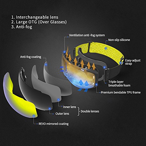 -. Title : Uniquebella Lagopus Interchangeable Lens OTG Ski Goggles Anti-fog Polarized UV400 Protection Spherical Dual Lens Snow Glasses Helmet compatible for Snowboard Skate Motorcycle Bicycle