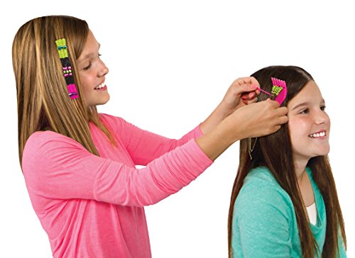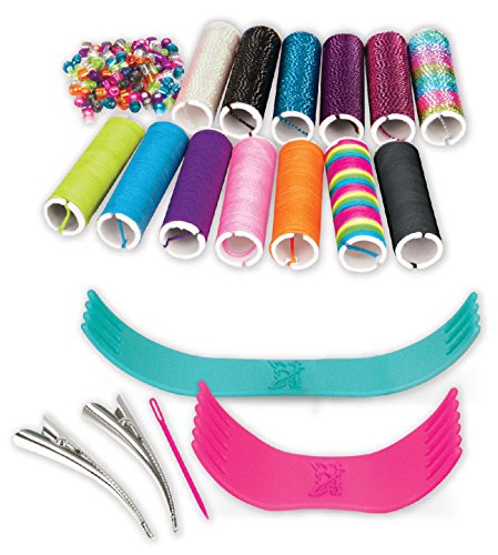 Add some festival flair to your hair! Design fun woven hair styles with the Fashion Angels Hair Wrapistry Kit. 2 sizes of weaving tools make it easy to weave color into your hair. Kit includes: 7 colored cords, 6 metallic cords, 2 hair clips, 2 weaving tools, 1 needle, assorted beads, and instructions. Recommended ages 8+.Feature