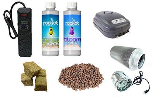 -. Feature : 1 - 600D Polyester Nylon grow tent / 1 - 4" inline fan with a Carbon Scrubber Air Filter / 3 - 225 light LED grow lights (for a total of 675) / 4 - 3.5 Gallon Reservoir Tanks / Net pots, rockwool cubes, 4-outlet air pump, Grow & Bloom Starter Nutrients