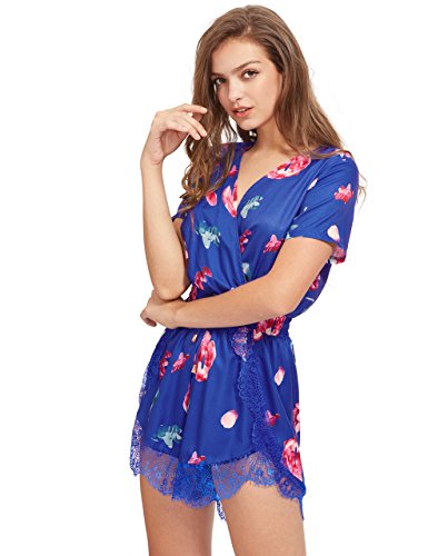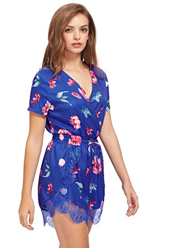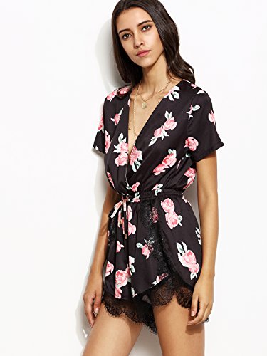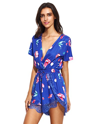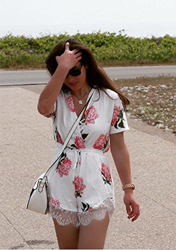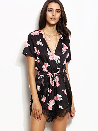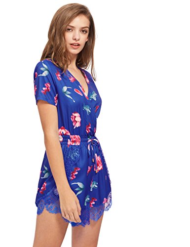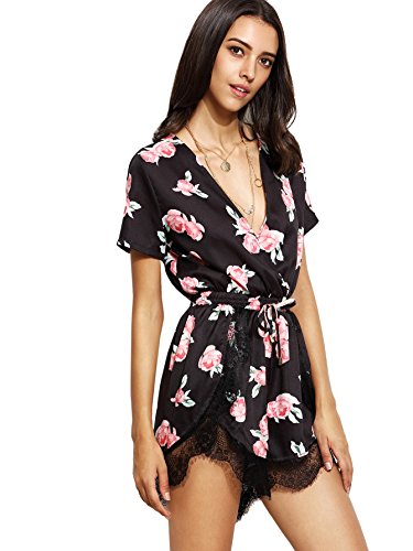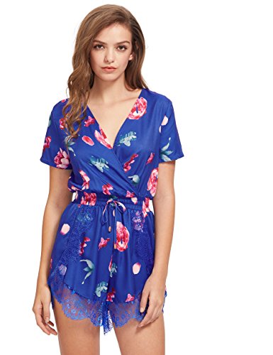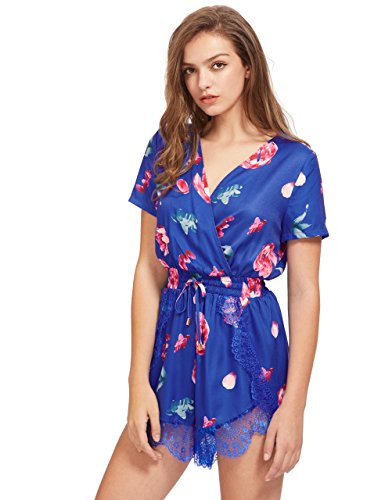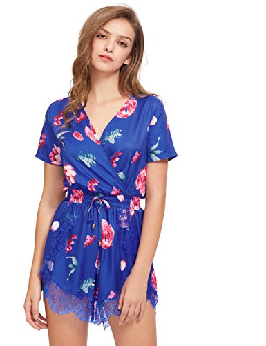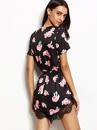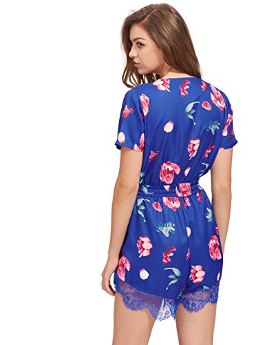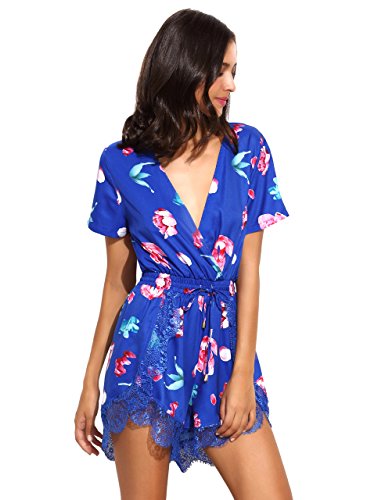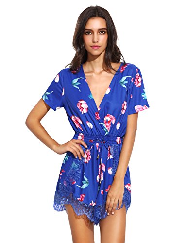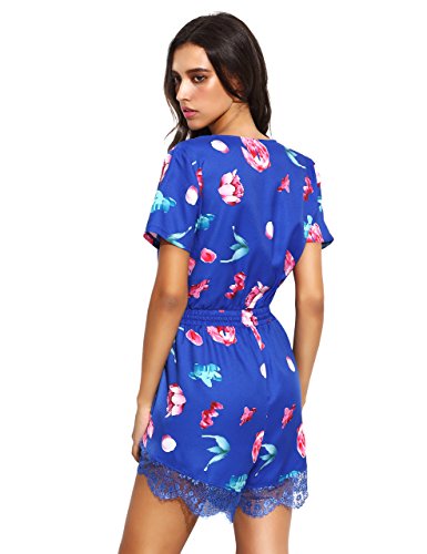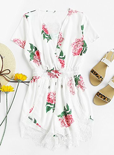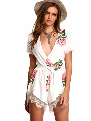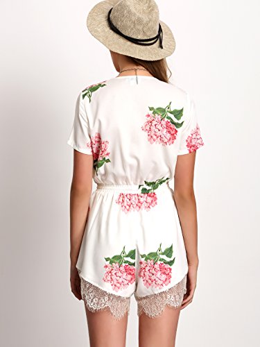 Floerns Women's V Neck Floral Print Short Romper Jumpsuit