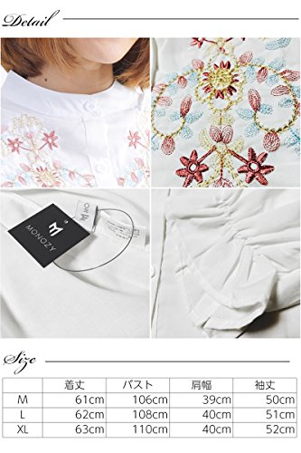 -. Title : [モノジー] MONOZY レディース ブラウス 花柄 刺繍 長袖 バルーンスリーブ トップス
