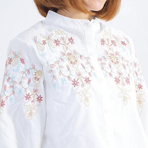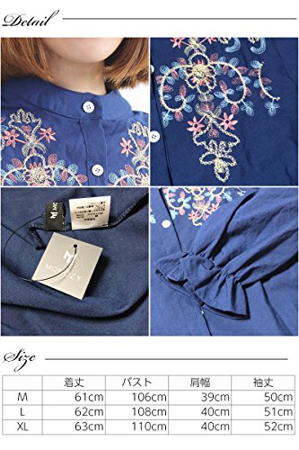 -. Feature : トレンドの刺繍が入った長袖ブラウスです。袖口のデザインも おしゃれ です。色とりどりの花や草の刺繍が可愛い く、刺繍は肩から胸、腕に入っているので顔も華やぎます。 / 詰襟タイプで首元がすっきり、これ1枚でスマートな着こなしができます。バルーンスリーブの袖口のゴム絞り、ひらひらのフリル デザインは手元も可愛く女性らしさをアップさせてくれます。 / 上品で かわいいホワイトと、刺繍が引き立つネイビーからお選びいただけます。シンプルにカジュアルで、清楚 系 フォーマルにも使えるエレガントな きれいめブラウスです。 / M L XLと大きいサイズまで取り揃えています。 さらりとした着心地で、秋、冬、春まで長い期間着用できます。普段のお出かけに、甘めのコーディネートでフェミニンに、オフィス、パーティー、謝恩会、色々なシーンで使えるトップスです。 / 【カラー】ホワイト 白/ネイビー【素材】コットン ポリエステル【サイズ】M / L / XL ※寸法は商品説明を参照してください。