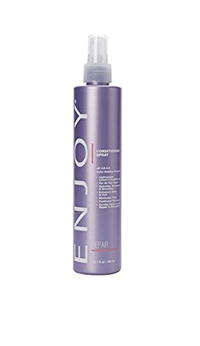 -. Feature : FRIZZ CONTROL: Conditioning Spray recommended for all hair types; gives the hair extra moisture, detangling, and protection it needs; leave in or rinse out; excellent for softness and frizz control; low pH of 3.5 4.5 closes cuticle and locks in hair color. / MOISTURIZING: Hair Conditioning Spray delivers intense moisturization and includes calming anti-frizz benefits without weighing hair down; this advanced smoothing system cleanses and helps tame unruly, frizzy hair, leaving it smooth and soft. / COLOR SAFE: Color safe formula for all hair types; for color treated hair; the anti-fade system for long-lasting color purity; protective formulas that help preserve and maintain color brilliance; color-treated hair requires special care. / SULFATE FREE: Sulfate-free, thickening conditioner for color treated hair infused with refreshing ingredients; this hydrating conditioner softens and adds shine while also fighting split ends. / ADVANCED CONDITIONING: Repair, restore, and revitalize your hair with the ENJOY Conditioning Spray; it deeply conditions, hydrates, and moisturizes hair giving it a soft and silky texture; plus it strengthens weak, damaged, and over-processed hair; most popular uses are: detangler conditioner, hair thickening conditioner, hydrating conditioner and strengthening conditioner. / Locks In Haircolor / Conditioning Spray / Recommended For All Hair Types