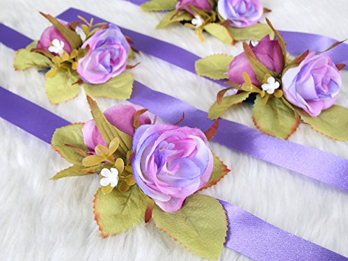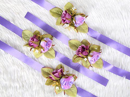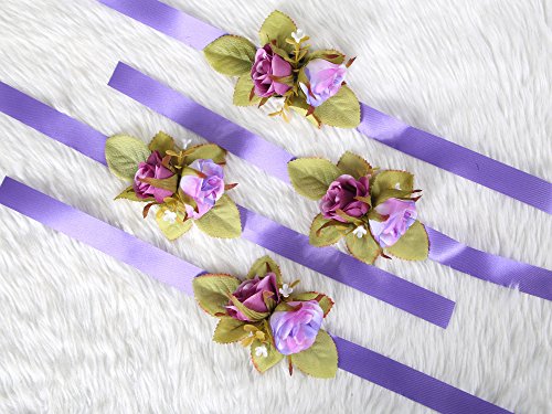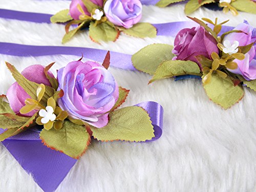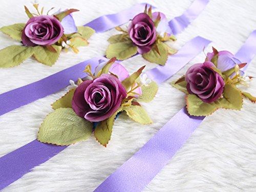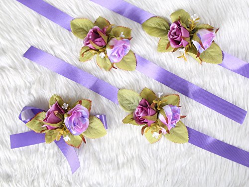 Wrist corsage flower for Prom night Wedding Bridal Bridesmaid Ceremony Party(Pack 4) (Purple theme)