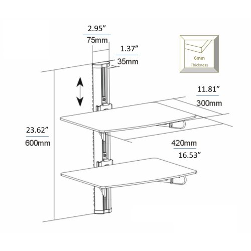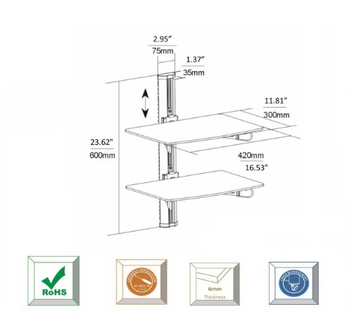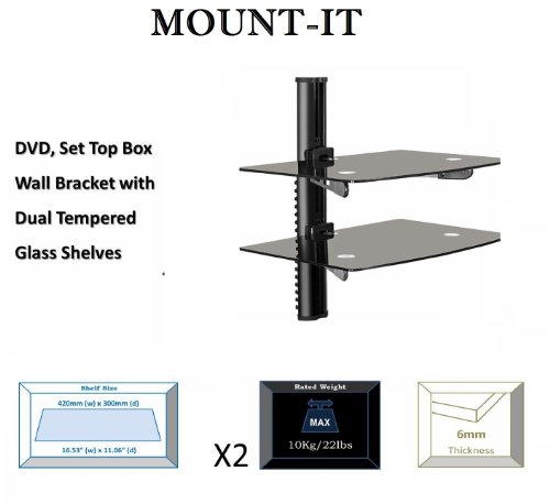 - Feature : Dual Shelf Wall Mounting system with Cable Management / Width: 16.53" Depth: 11.81" Height: .23" / Black Tinted Tempered Glass / Fits DVD or other A/V components / Max Support Weight: 22 lbs.