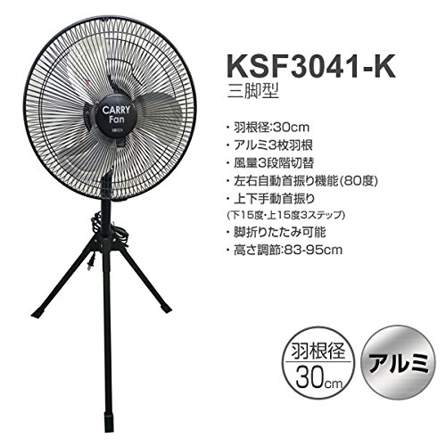 -. Title : 広電(KODEN) 30cmアルミ羽根工業扇風機 (三脚型) ブラック KSF3041-K