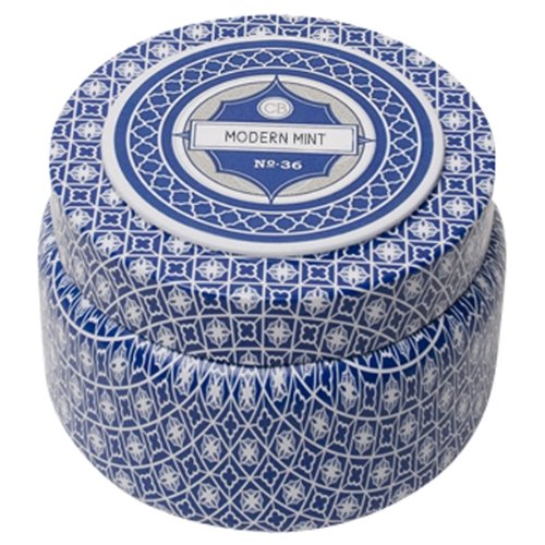 Fine Modern Mint Scented Candle in Blue Pattern Metal Travel Tin