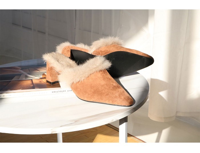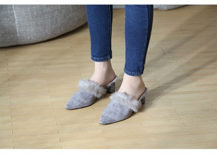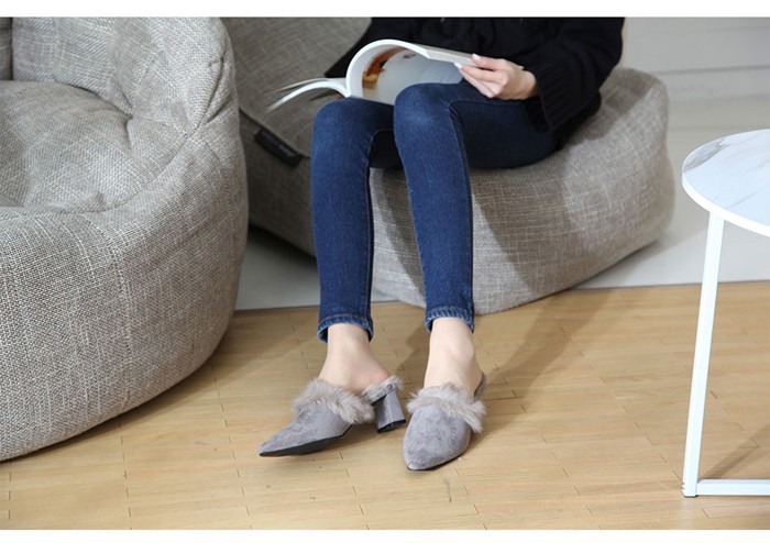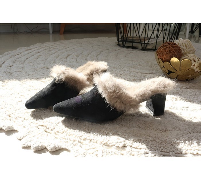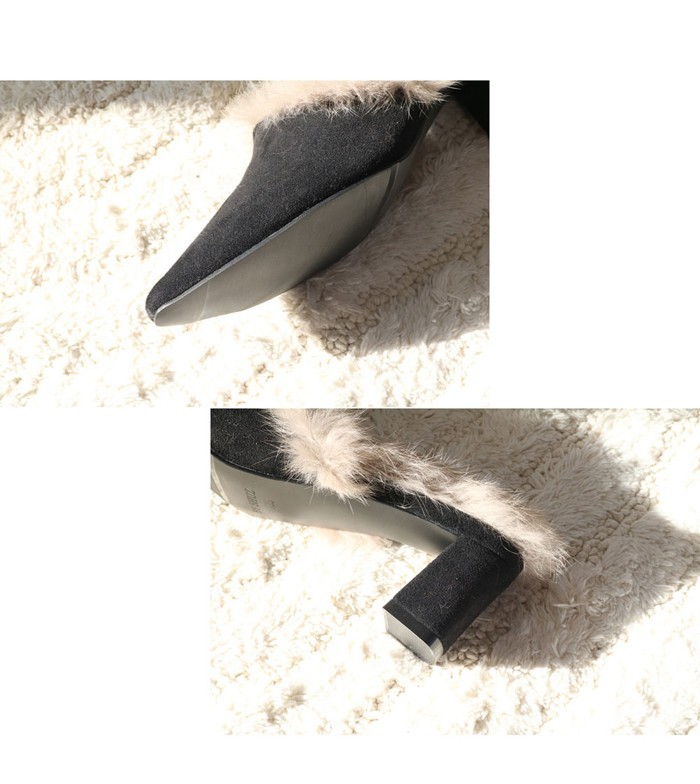 商品名:ミュール レディース チャンキーヒール 太ヒール ポインテッドトゥ 裏起毛 2017 秋 冬 ファッション 靴 婦人靴