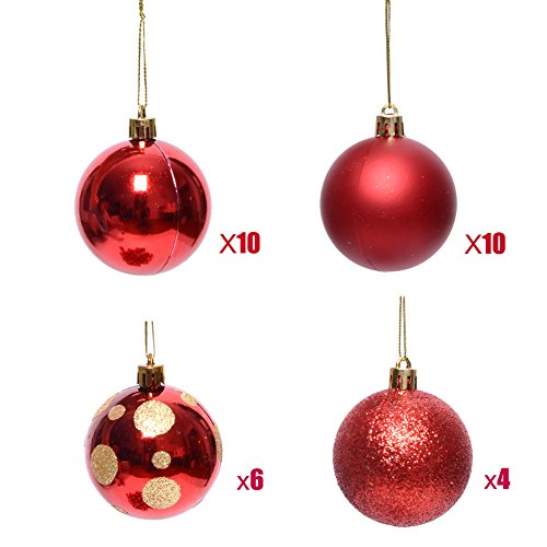 - INCLUDES: 30 pcs Christmas ornaments in 1 box. Hooks for Christmas balls included to make hanging easier, balls are equipped with caps & string hangers. The Christmas balls Ornaments are done in 4 special finishes, allow you to decorate with more possibilities.