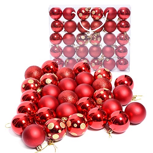 CHICHIC 30ct 2.4"/60mm Christmas Ball Ornaments Set Shatterproof Tree Balls Decorative Hanging Baubles Pendants for Christmas Holiday Wedding Party Decorations Tree Ornaments Hooks Included, Red