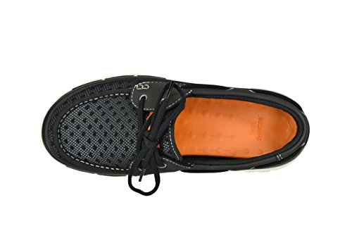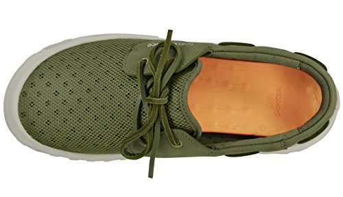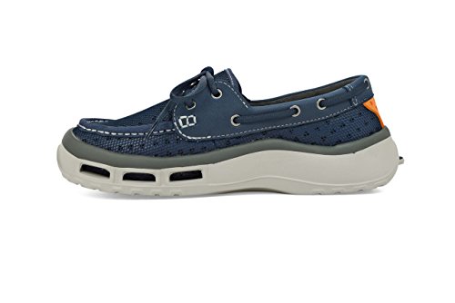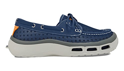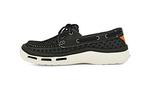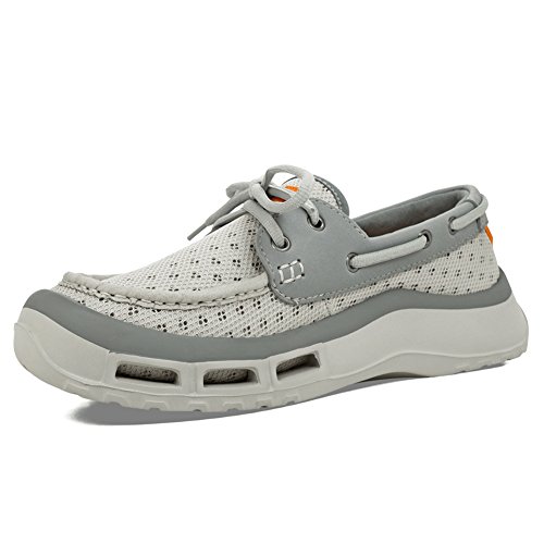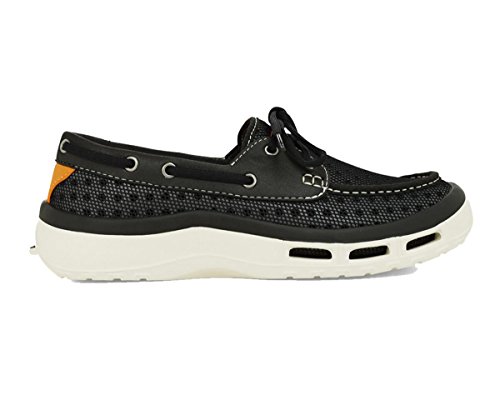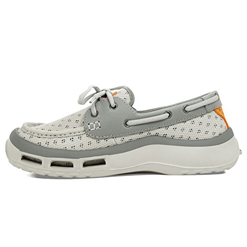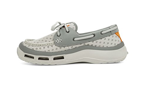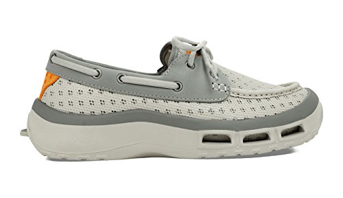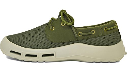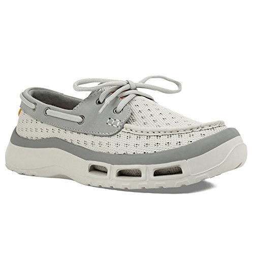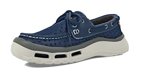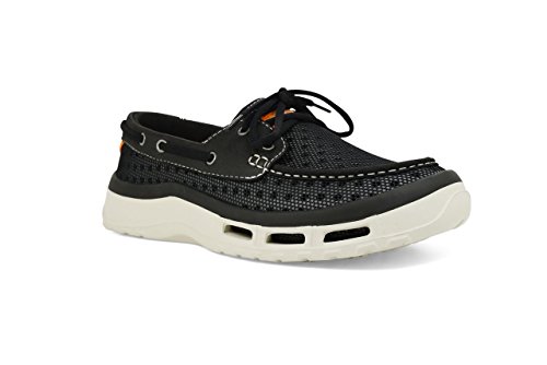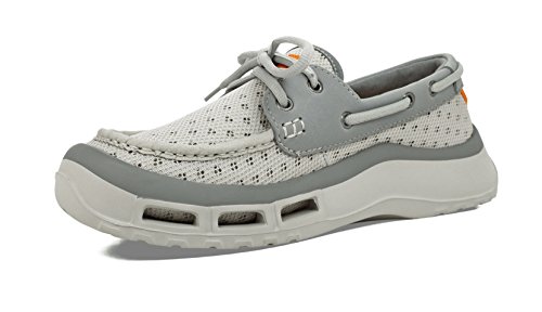 Product Description A lace-up water shoe with a self-draining system and a mesh upper, the Fin watermen's shoe dries quickly. Ideal for fishing and boating enthusiasts, surfers and beachcombers, the Fin holds its grip on slippery surfaces-in the water and out. Material: Foam, Mesh 0