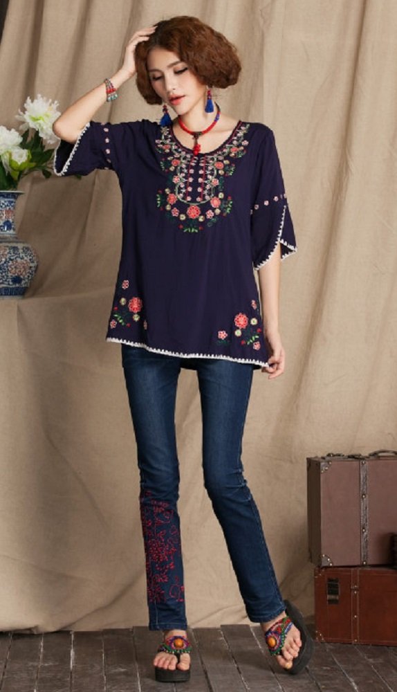 Bohemian style embroidery makes this colorful and gorgeous just by wearing this one piece.