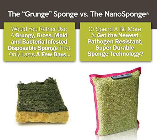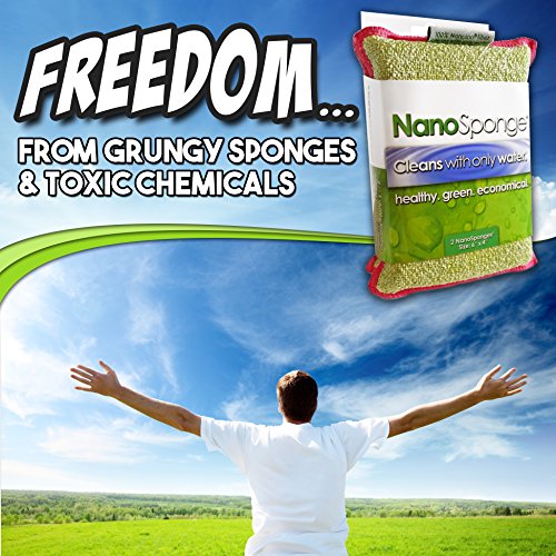 -. Feature : IT CLEANS LIKE NOTHING YOU HAVE EVER SEEN. Our Nano Sponges lift dirt, grease & grime like a magnet! The scrubbing side is super durable and can scrub almost anything clean, but WON'T SCRATCH! They can even absorb big liquid spills, and they dry quickly. They also pull up grease, oils, fats, and chemicals. Amazing for kitchens, bathrooms, dishes, baseboards, tile, grout refrigerators, stainless steel, stuck-on messes, glasses, bathrooms, garages... you name it, the NanoSponge can clean it! / GUARANTEED NOT TO SMELL OR STINK LIKE REGULAR BACTERIA INFESTED SPONGES. Do you clean with germ filled stinky sponges or cloths? Yuck! You can now ELIMINATE the #1 source of germs in your home--the disposable sponge. The NanoSponges will stay odor-free and fresh for 30 days, or your money back. / 2 IN 1 DUAL USE SPONGE. The NanoSponge® is made from two unique weaves of our proP.R.Ietary Nanolon® fiber. One side scrubs, the other absorbs and wipes away. These Commercial Grade sponges are perfect for use in your kitchen, bathroom and anywhere else around the house. / BIGGER CLEANING SURFACE AREA. Tired of little, flimsy sponges that don't get the job done? These oversized 6 x 4", super durable sponges cover a larger surface area, and are 50 times more durable than the cheap throwaway sponges. / CLEANS WITH ONLY WATER®...NO CHEMICALS. Our proP.R.Ietary Nanolon® fiber works in reducing those toxic cleaning petrochemicals from your home, and breathe much easier. Reducing toxic household chemicals may also reduce chemical related sensitivities and allergies.