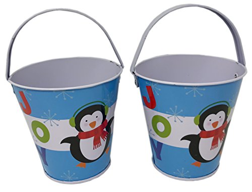 Christmas Prints Metal Buckets, Party Favors, Table Centerpiece, Set of 2, 4" (Joy)