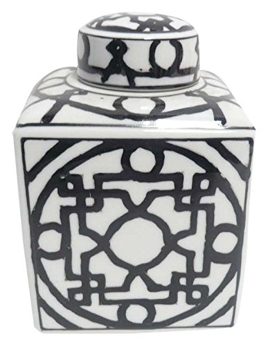 Gold Eagle USA 6" square Asian Ceramic Jar W/Lid