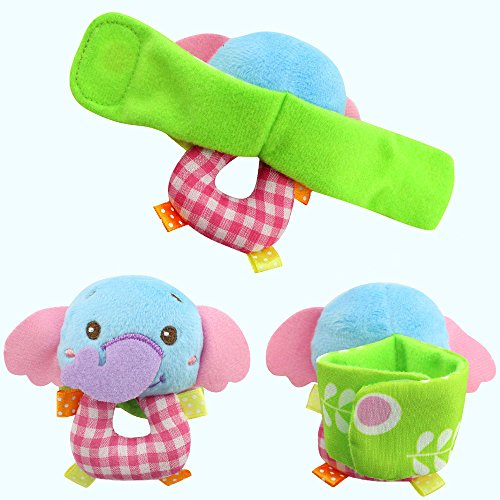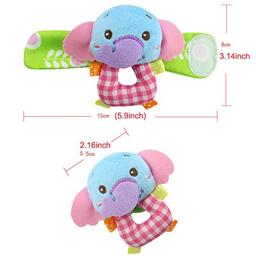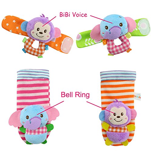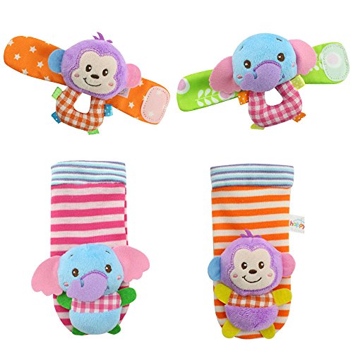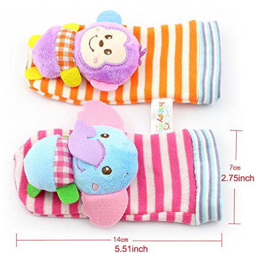 package : 2pcs wrist+ 2pcs sock in monkey and elephant animal design as picture show. Two different animals to play and active, not a pair of each .