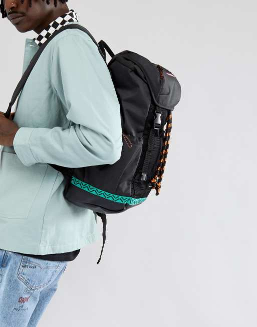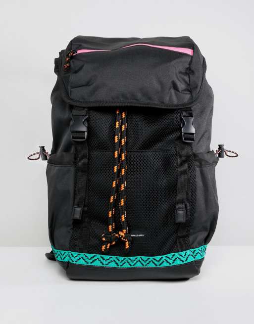 ASOS DESIGN hiker backpack in black with colored trims