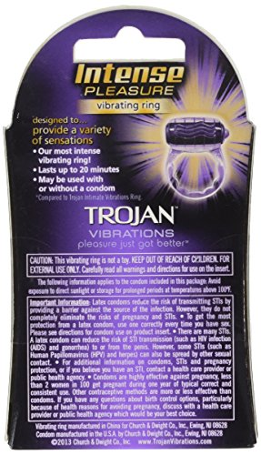 Shake things up in the bedroom. The Trojan Intense Pleasure Vibrating Ring is designed to provide a variety of sensations for both partners through intimate vibrations.
