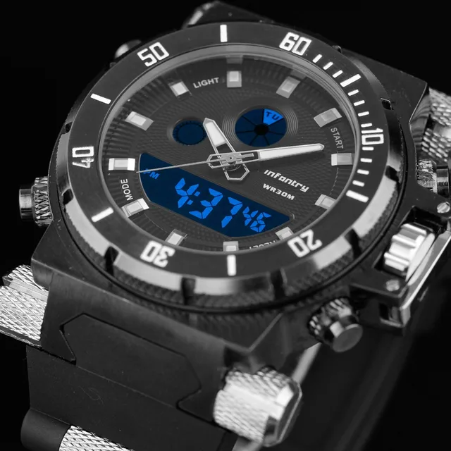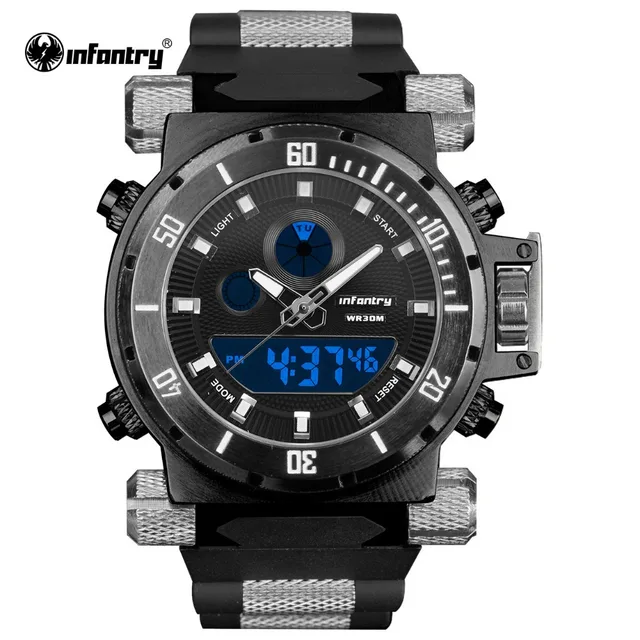 | [해외] Infantry 디지털 석영 손목 스포츠 시계 남성 clcok 크로노 그래프 고무 손목 시계 relogio masculino 2017 |