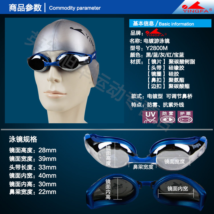 游泳镜 防雾防紫外线泳镜 电镀泳镜