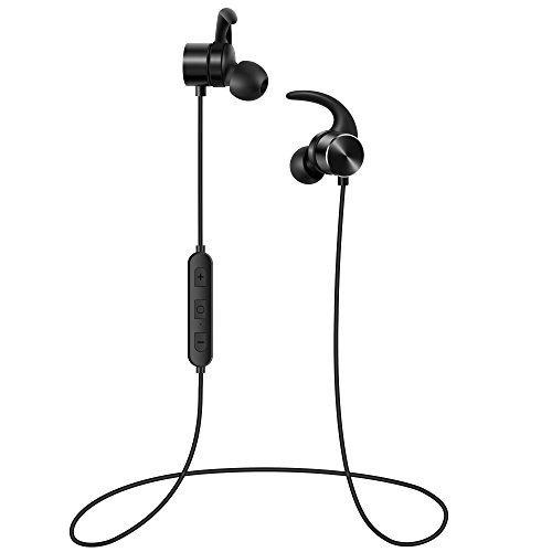 -. Binding : Wireless Phone Accessory -. Brand : Tranya -. Color : Black -. EAN : 0768430524335 -. Feature : SOUND QUALITY: Featuring latest CSR technology and 6mm speaker that produce incredible sound quality with deep bass and crystal crisp treble. New Listing Promotion: 19.98 USD. / SECURE FIT & MAGNET DESIGN: Mini in-ear design with four pairs of interchangeable flexible ear hooks and three pairs of customized ear tips to ensure your headphones stay comfortably firm in place. Magnet design that earbuds can attach together so you can wear them like a necklace and avoid losing them, it's the very Bluetooth headphones for running, hiking, cycling, jogging, and so on. / SWEAT PROOF: IPX5 waterproof rated design with Nano-coating internal components and water resistant shell provide a double layer of water resistant protection. / BATTERY LIFE & RANGE: Up to 7 hours music time and 240 hours standby time with high capacity battery charged within 2 hours. Provide stable and seamless connectivity with Bluetooth 4.1 enabled devices up to 33 feet away. / AMAZING MICROPHONE SOUND: CVC 6.0 Noise Cancellation technology reduces background noises, enable more clear microphone sound. -. Label : Tranya -. Manufacturer : Tranya -. PackageQuantity : 1 -. ProductGroup : Wireless -. ProductTypeName : WIRELESS_ACCESSORY -. Publisher : Tranya -. Studio : Tranya -. Title : Tranya Bluetooth In-ear Wireless Sports Headphones Sweat Proof, Magnetic Design, Secure Fit Earbuds, Built-in Microphone Headset for Running, Jogging -. UPC : 768430524335